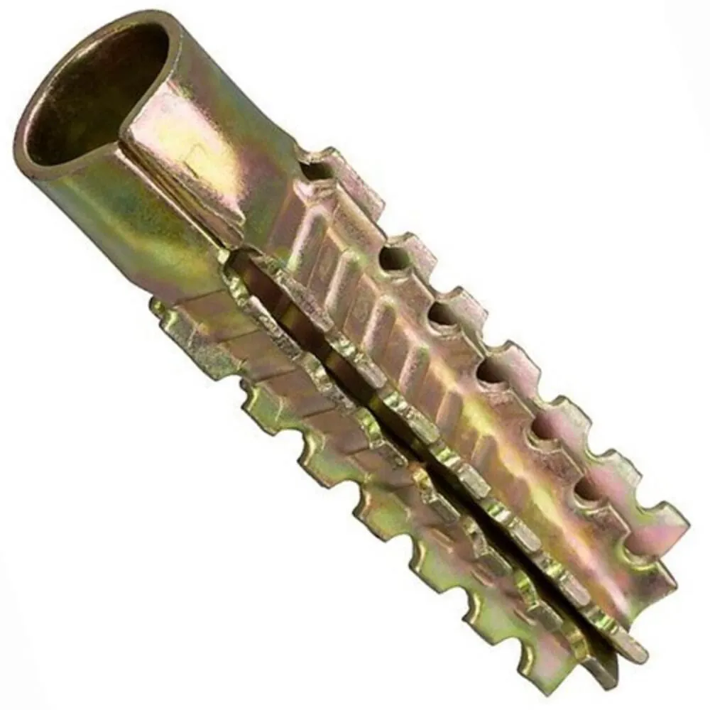 Дюбель для газобетона металлический применяется в комплекте с саморезом для крепления различных конструкций к газобетону. Имеет четырехсегментную распорную часть с внешними зубцами, обеспечивающими надежное крепление. Отличается высокой несущей способностью, специальные ребра обеспечивают надежную фиксацию. Крепежный элемент имеет отличные прочностные характеристики и высокую устойчивость к воздействию различных факторов окружающей среды. Хорошее сцепление с материалом выдерживает значительные нагрузки. Широко применяется в быту и строительстве