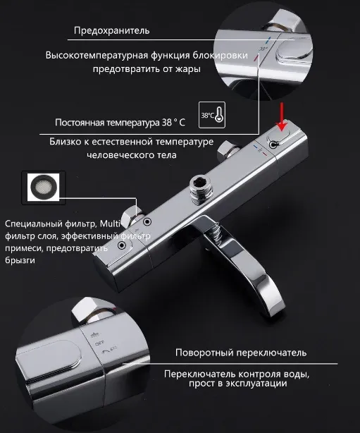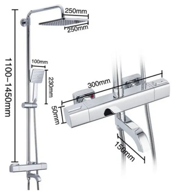 Душевая система термостат G2491 GAPPO лейка "Тропический душ" квадрат 250х250 хром