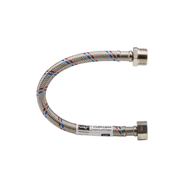 Гибкая подводка для воды VRT предназначена для подключения к трубопроводам водоснабжения, подключения сантехнических приборов, таких как смывных бачков, смесителей, водонагревателей, стиральных и посудомоечных машин и др.