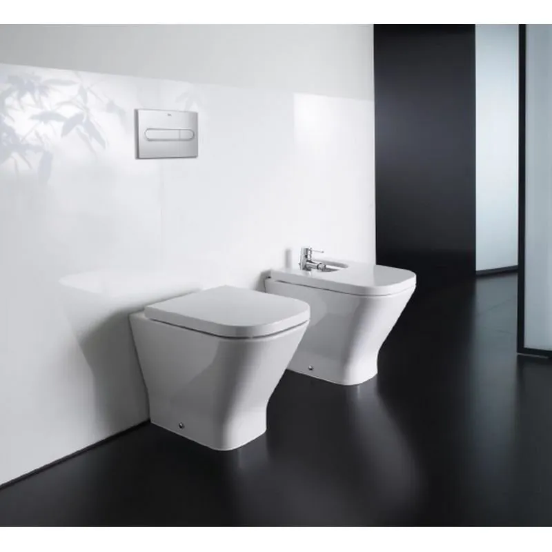 Приставной унитаз Roca The Gap 347477000 в комплекте: крышка-сиденье Roca Gap 801472004 с микролифтом петли хром, смывной бачок скрытого монтажа Roca Basic tank 890090200, смывная клавиша Roca Dual 890095001 хром. Готовое удобное решение: все необходимое для установки в одном коробе. Чаша прямоугольной формы.