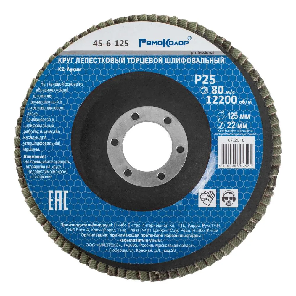 Круг лепестковый торцевой 125х22мм, P25, РемоКолор