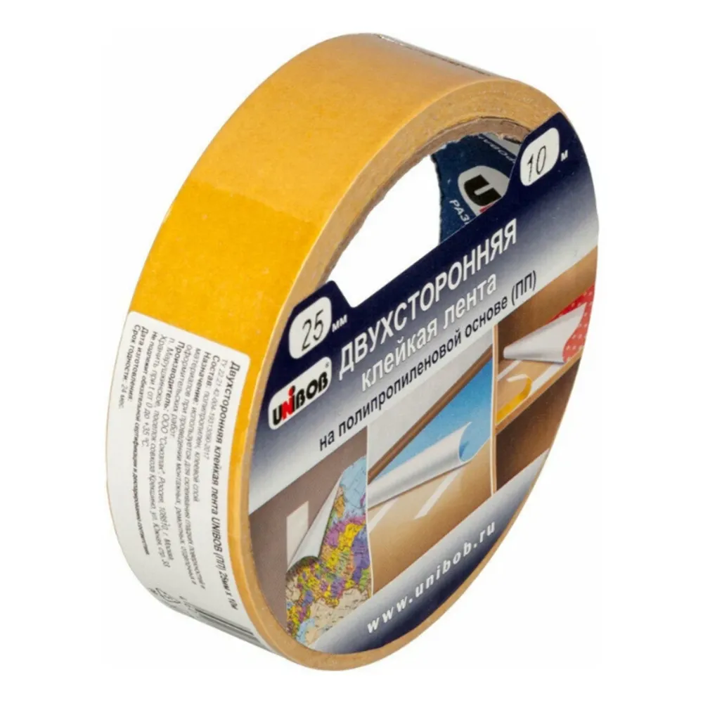 Двухсторонняя клейкая лента на основе полипропилена 25ммх10м, 71мкм, матовый, UNIBOB
