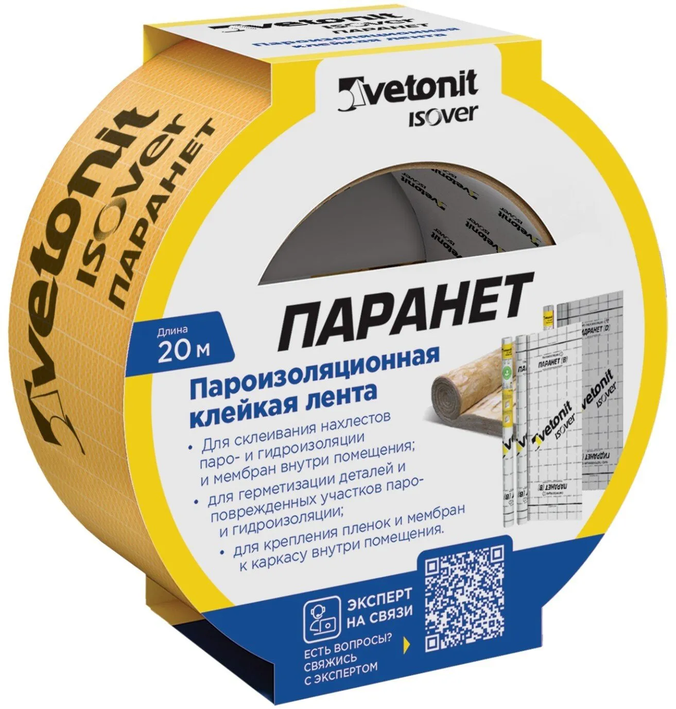 ISOVER Паранет - клейкая лента, разработанная специально для совместного применения с утеплителем ISOVER Скатная Кровля Комфорт и с пароизоляционной плёнкой для защиты конструкций от проникновения пара.