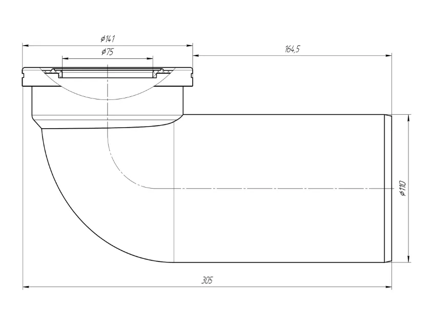 Труба для подключения унитаза к канализации угол 90° диаметр 110мм. Для пластиковых труб.