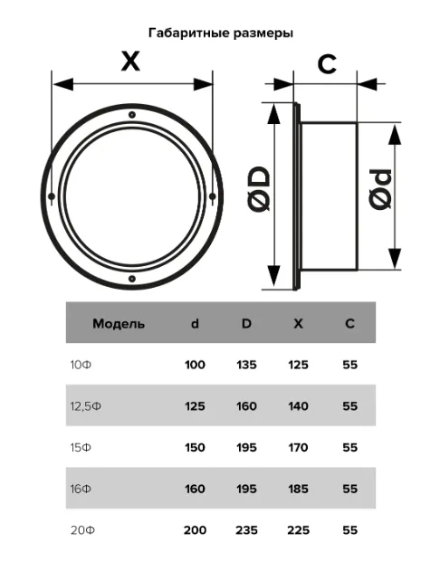 Фланцы Ф используются для присоединения воздухораспределителей без фланца к круглым воздуховодам соответствующего сечения. Крепление при помощи саморезов.