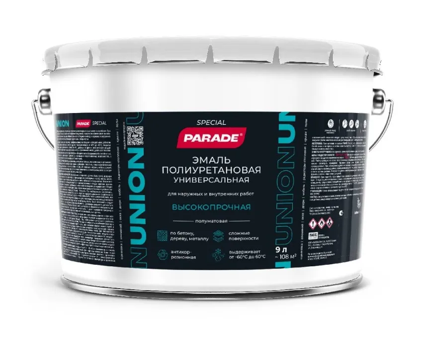 Эмаль полиуретановая Parade UNION универсальная, БАЗА А, 9,0л