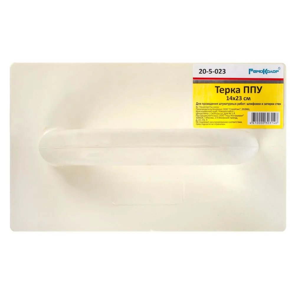 Предназначена для выравнивания, финишной затирки и доводки оштукатуренных поверхностей. Изготавливается из жесткого пенопоулеритана, компонет полиэфирный ИЗОЛАН, который обеспечивает длительный срок службы, удобная ручка способствует комфортной работе.