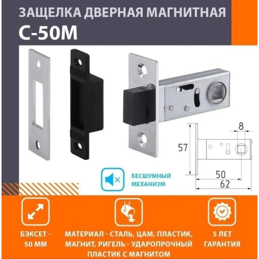 Дверная защелка предназначена для закрывания и фиксирования в закрытом положении межкомнатных деревянных дверей. Основная отличительная особенность модели – магнитный ригель. Принцип работы магнитной защелки аналогичен работе механизмов со стальным и пластиковым ригелями, а главное преимущество – бесшумная работа. Минимизация шума происходит также за счет специального вкладыша из вспененной ленты в ответной планке (идет в комплекте с защелкой). Магнитные внутренние механизмы востребованы для установки в спальнях и особенно в детских комнатах. Ещё один плюс магнитного механизма состоит в том, что при открытой двери ригель не выступает за дверное полотно.